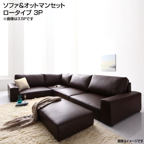 ソファセット ソファ&オットマンセット ロータイプ 3人掛け コーナーソファ 大型ソファ 大きいソファ 合皮レザー レザーソファ ローソファ 低いソファ フロアソファ こたつソファ 分割ソファ 一人暮らし ワンルーム 新婚 同棲 新生活 新築 ブラック アイボリー ブラウン